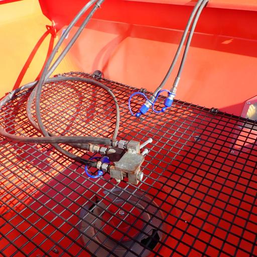 Zweischeibenstreuer, 900 Liter Inhalt, Gelenkwelle Waltarscheid, Einfüllgitter, hydraulische Schieber mit 2-Weg Einheit,
