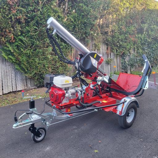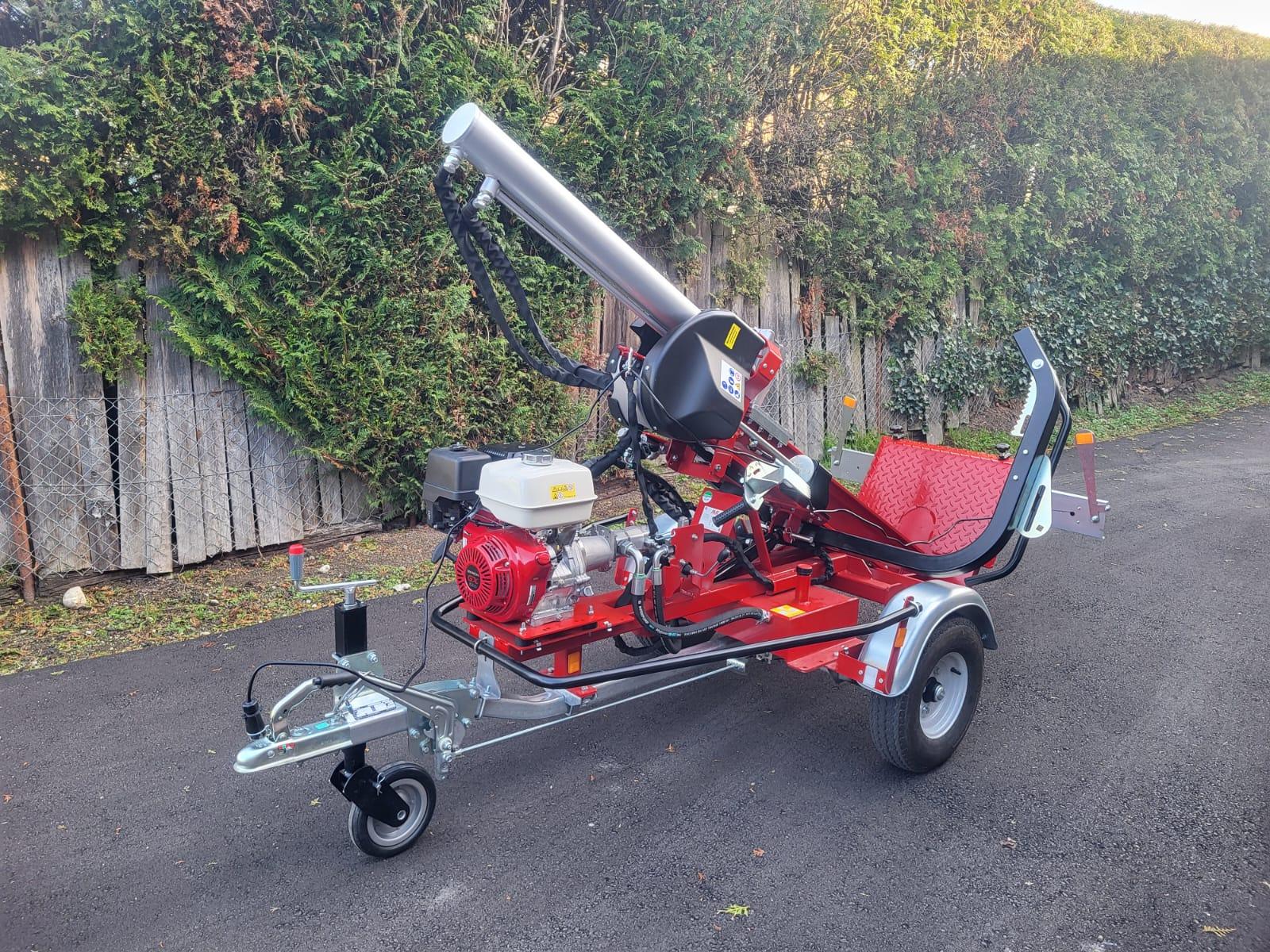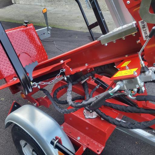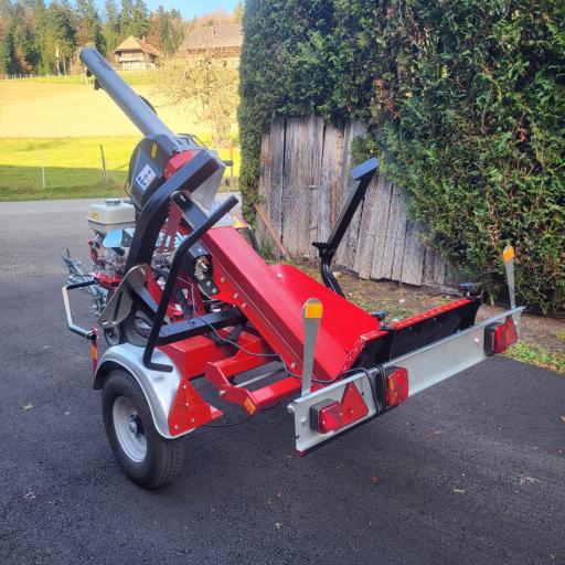 Benzinmotor Honda GX 390 mit 13 PS, Doppelpumpe, Öffnungsweite 115 cm, Spaltdruck 17 Tonnen, 2 Spaltgeschwindigkeiten - schnellerer Rücklauf, hydraulischer Stammheber (einstellbare Hubgeschwindigkeit), grosse – solide Vollstahlbodenplatte, Zweihandbedienung mit Haltkralle, ergonomischer Spaltkeil. Fahrwerk mit Strassenzulassung inkl. Formular 13.20 und MFK-Abnahme, Beleuchtungsanlage (wegnehmbar), Feststellbremse, gefederte Achse, interessanter Preis
