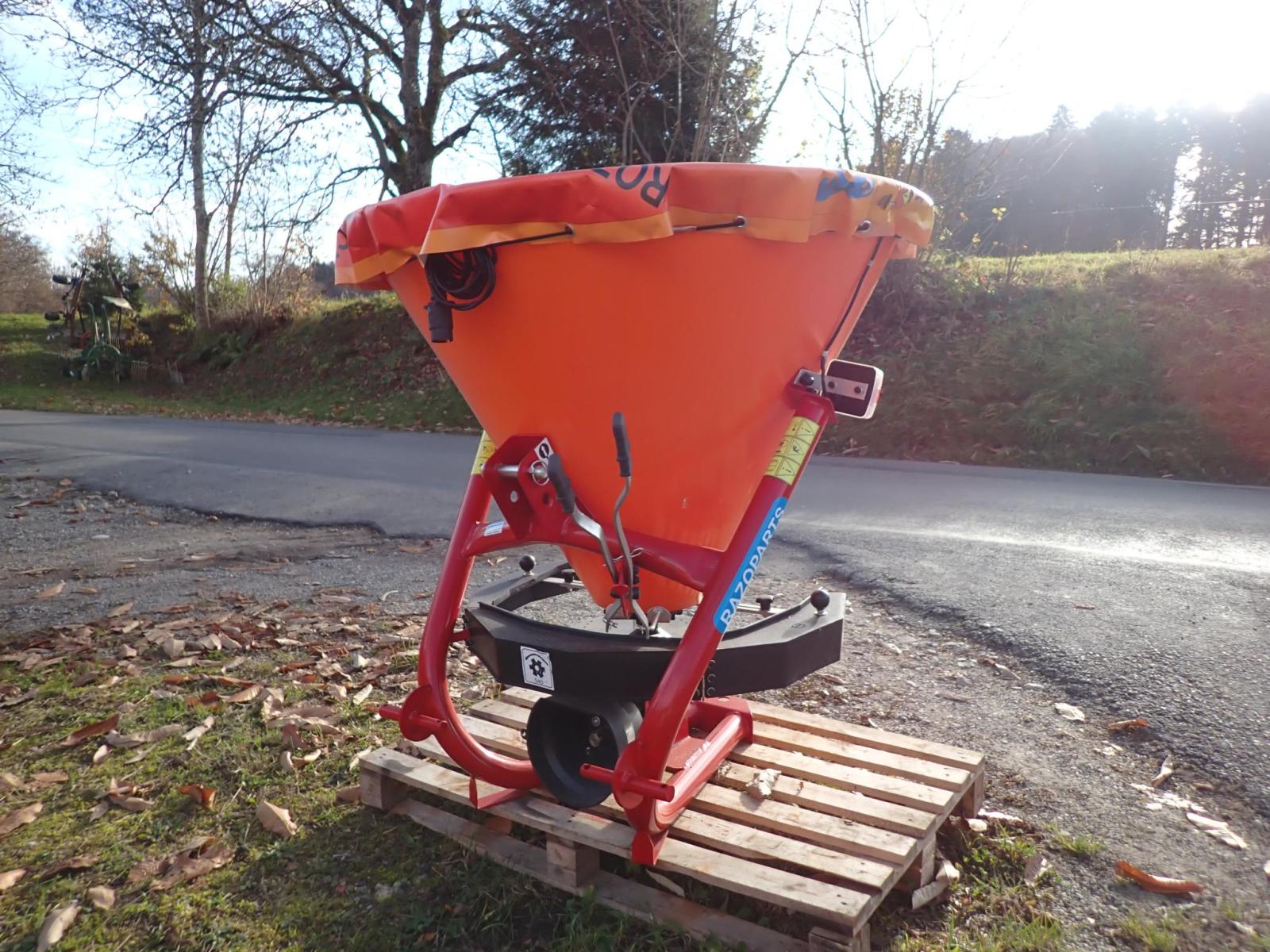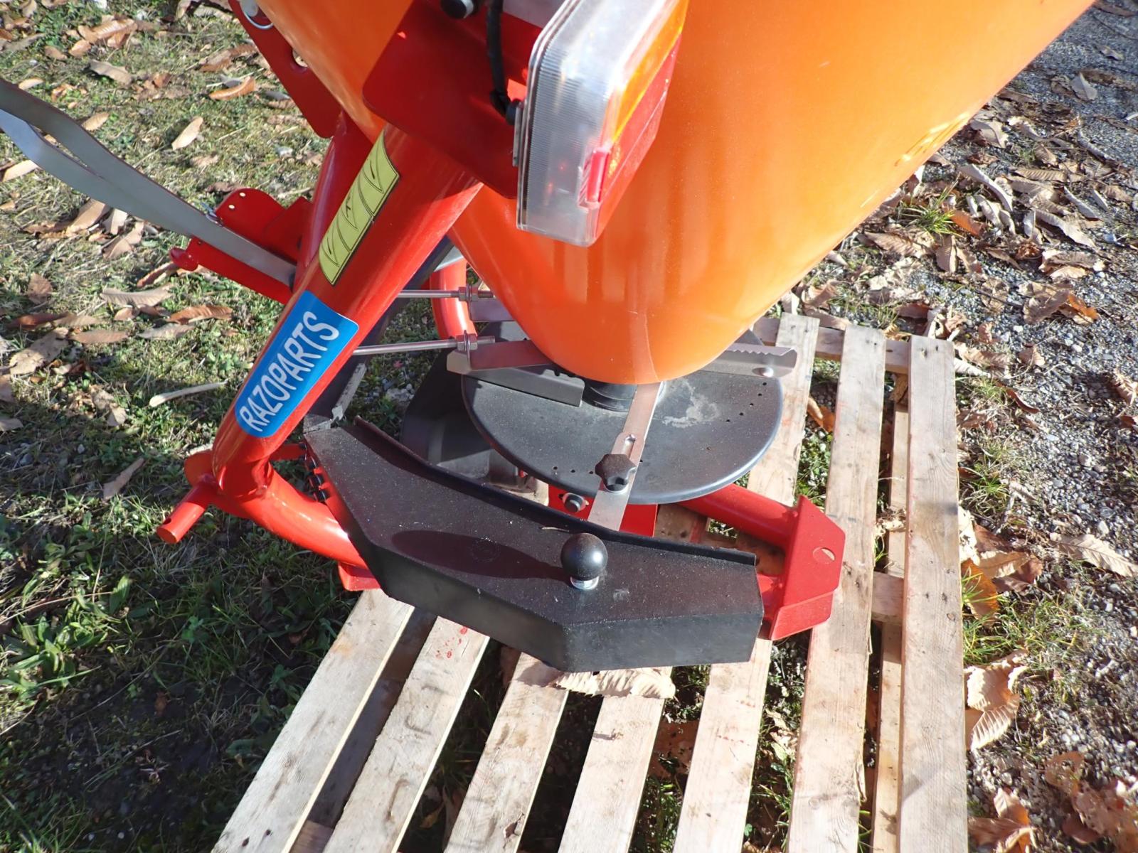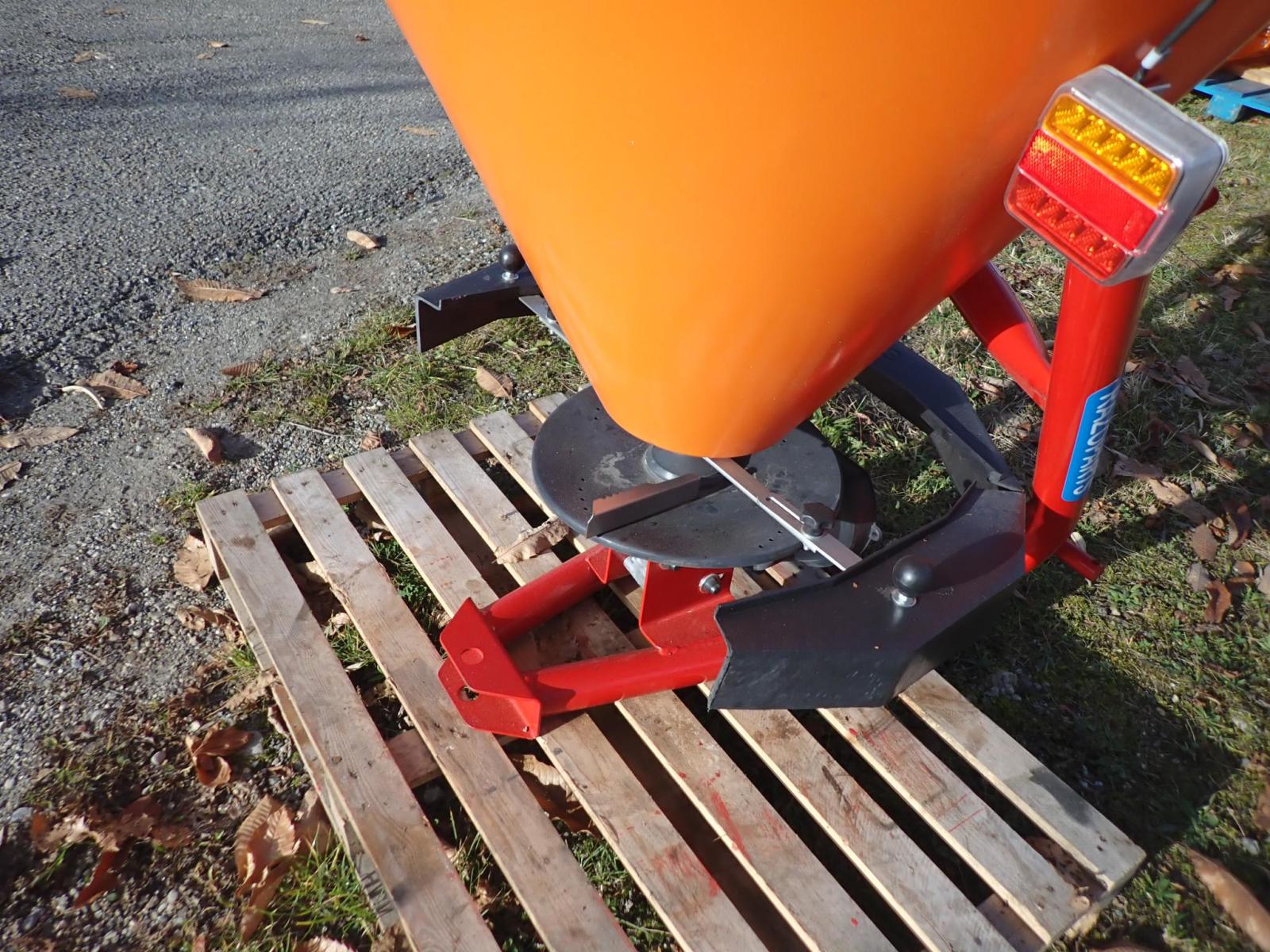 3 Stück Salz- und Sandstreuer für Traktor 3-Punkt Kat. 1 + 2. Passend an alle Kleintraktoren, Traktoren oder Vierradmäher. Sand- und Salzstreuer mit Antrieb über Gelenkwelle. Trichter aus Kunststoff. Querwinkel-Mischwerk, Streuscheibe aus Kunststoff mit 3 Schaufeln aus Edelstahl. Wartungsfreies Ölbadgetriebe. Mech. Schieberbetätigung. Komplett mit Beleuchtung und Gelenkwelle. Inhalt 330 Liter, Nutzlast 430 kg, Streubreite 1-4 m.