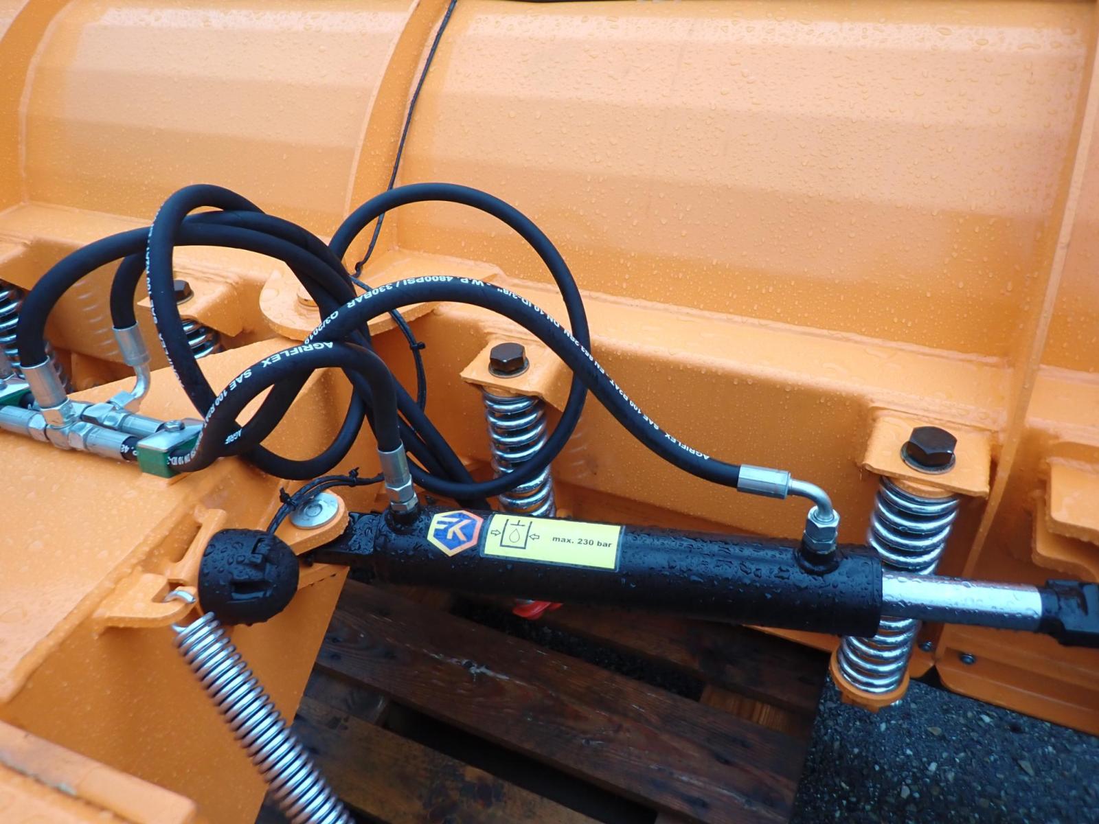 Anbau an Euro 8 oder Dreipunkt Kat. I / II, Hardox-Schürfleiste, Auffahrsicherung über Federpaket, Schwenkvorrichtung hydraulisch (1 DW-Ventil nötig), Pendelrahmen, LED-Markierungsleuchten, Arbeitsbreite 220 cm, Pflughöhe 80 cm