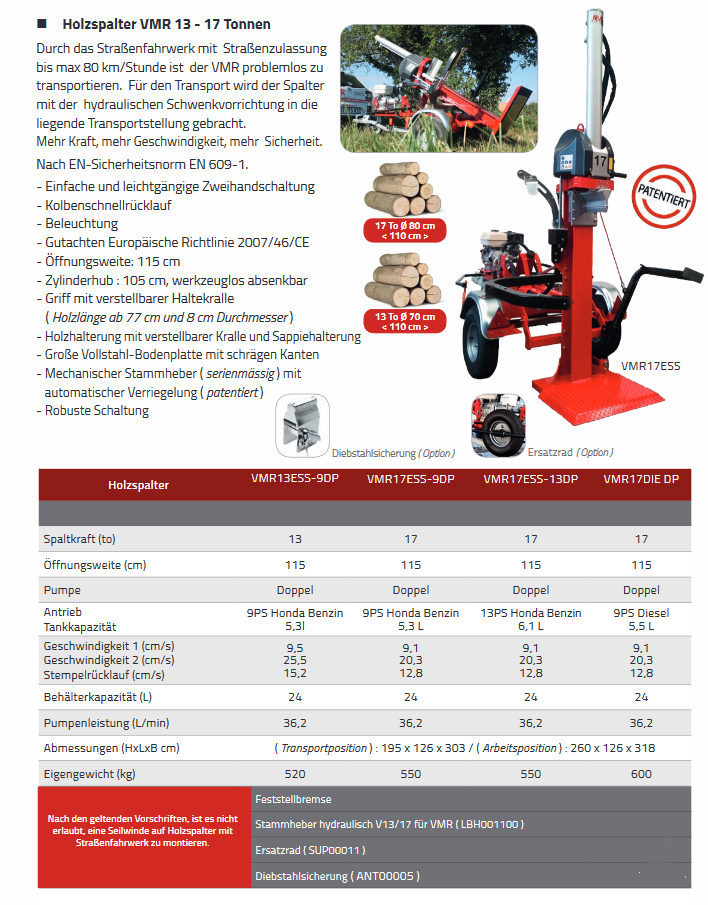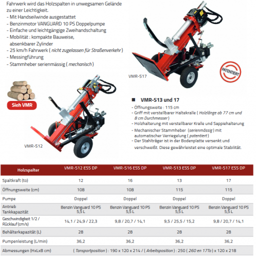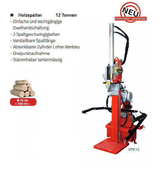 Aus der Palette der Spaltmaschinen ab 12 Tonnen Spaltkraft möchten wir hier den AMR VPE 12 besonders erwähnen.