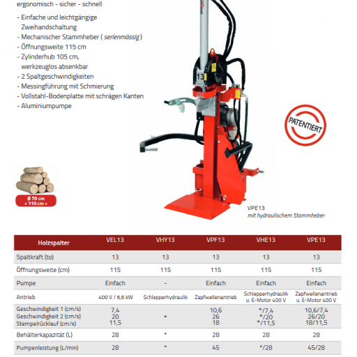 - Holzspalter ab 13 Tonnen