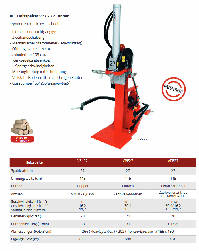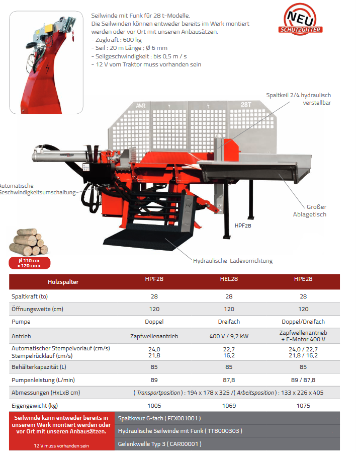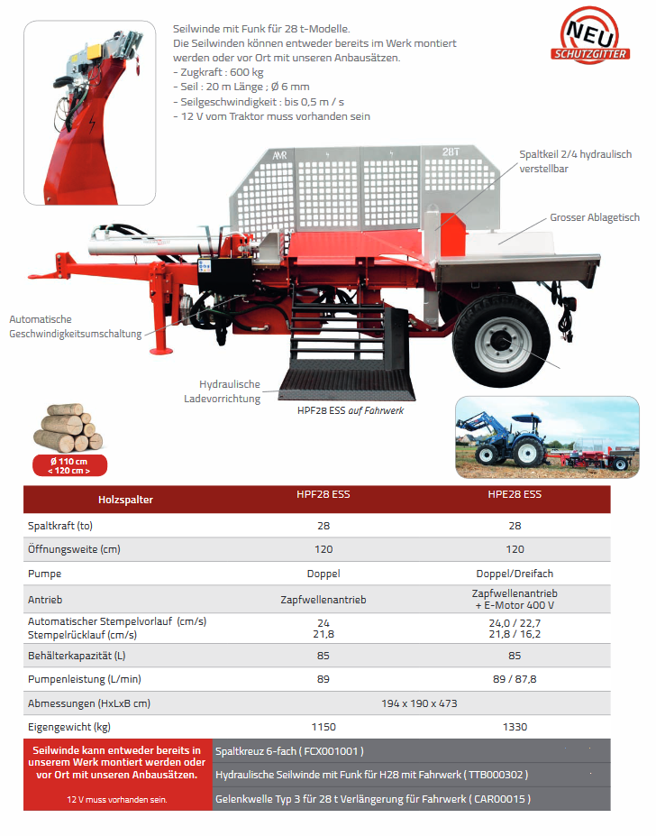 Und als letzer Helfer für den Profi, möchten wir Ihnen den liegenden Spalter für 28 Tonnen zeigen.