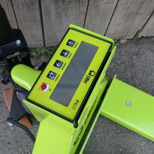 mit Tandemrollen, Hubkraft 2500 kg, alle Rollen aus Polyruethan, mit Waage, 4 Wiegezellen sorgen für eine ausgeglichene, genaue Gewichtsangabe, 6-stellige LCD-Anzeige, mit 4 Standardbatterien AA