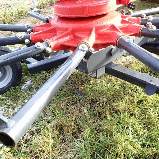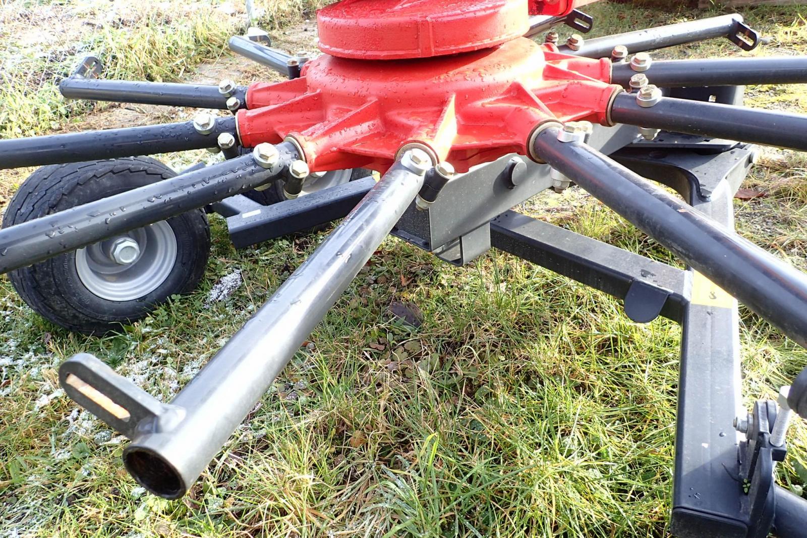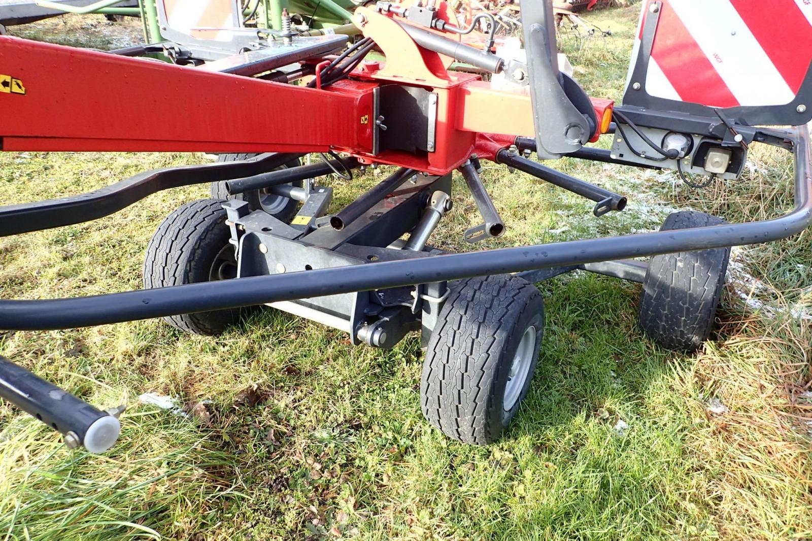 1X11 und 1X12 Kreiselarme mit je 4 Paar Doppelzinken, Schwadtuch hydraulisch hochstellbar, elektrische Beleuchtung, Warntafeln, Aushubhöhe von 50cm (so kann über bestehenden Schwad gefahren werden),