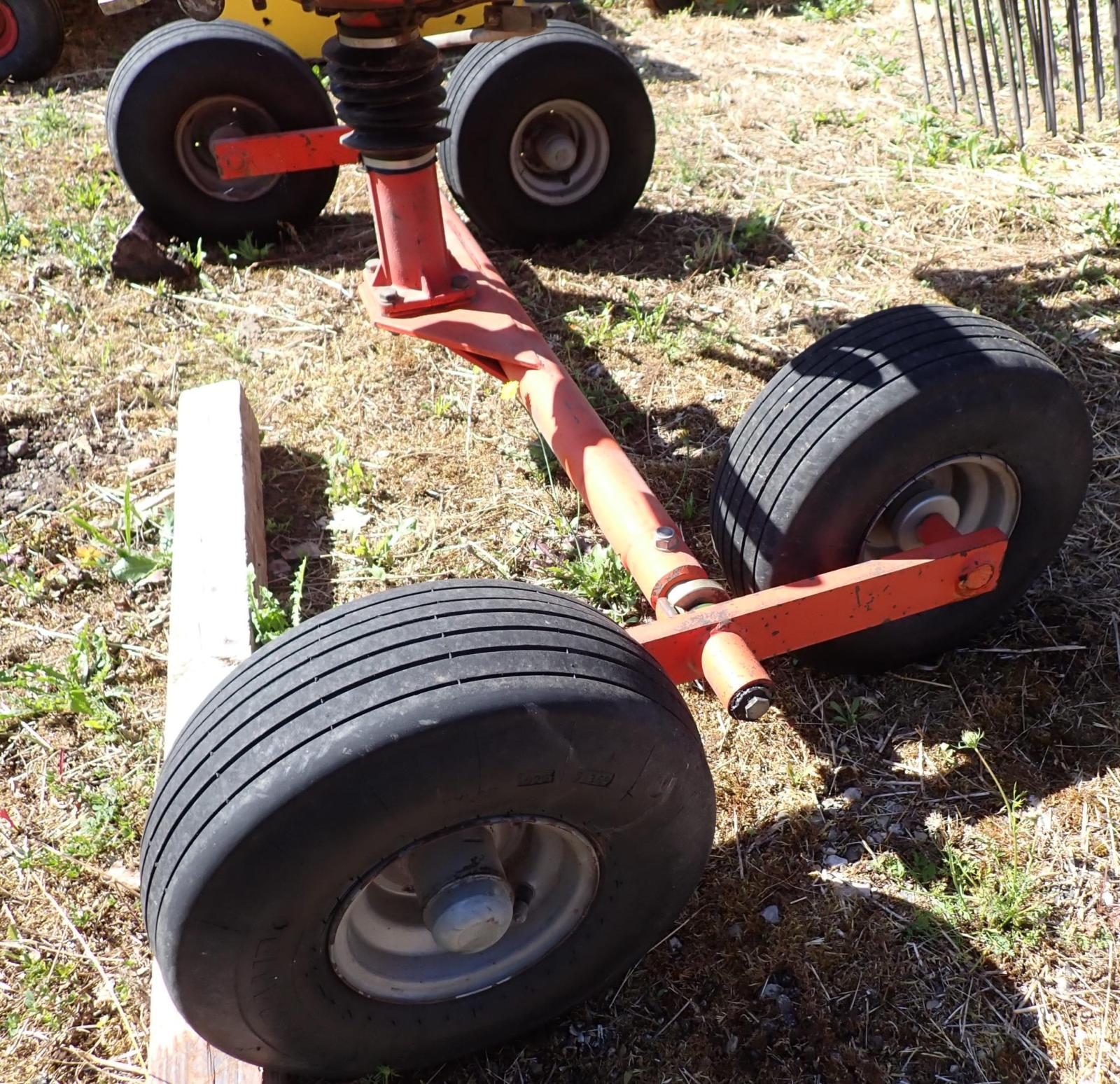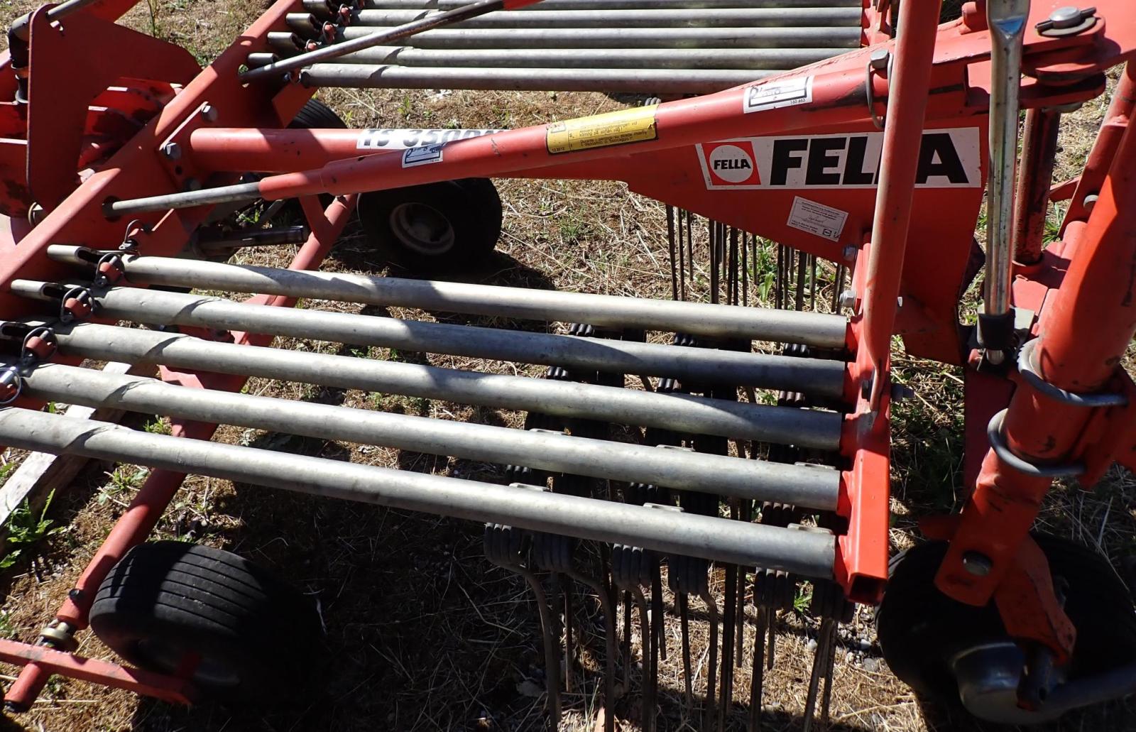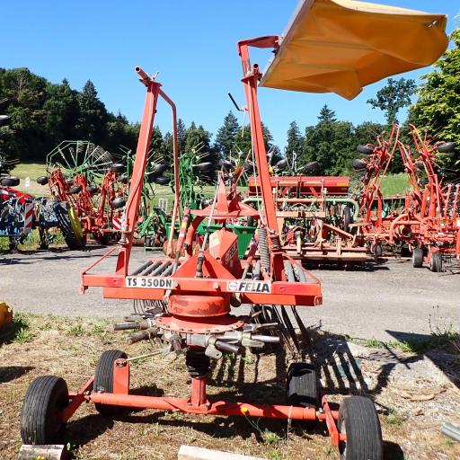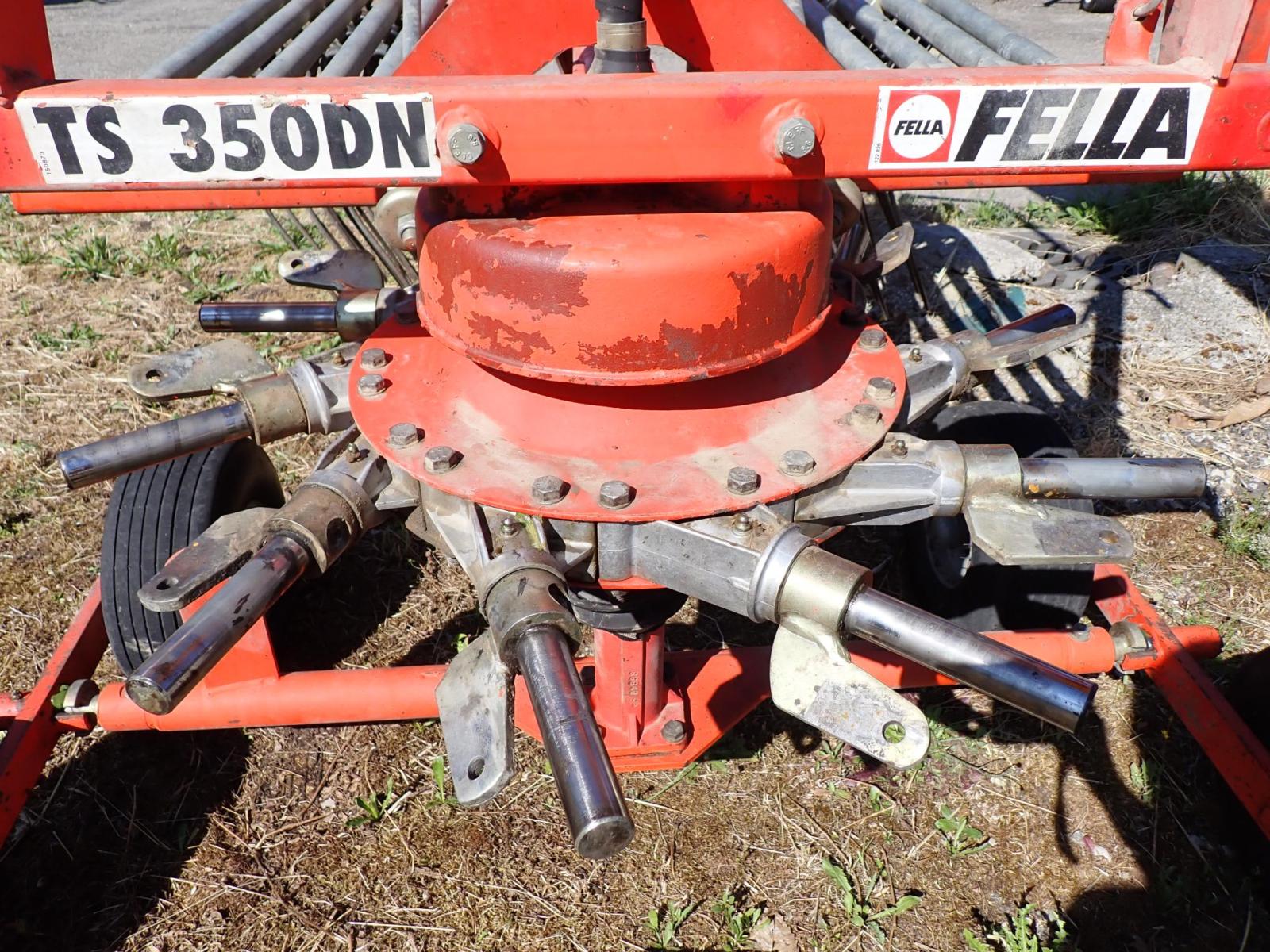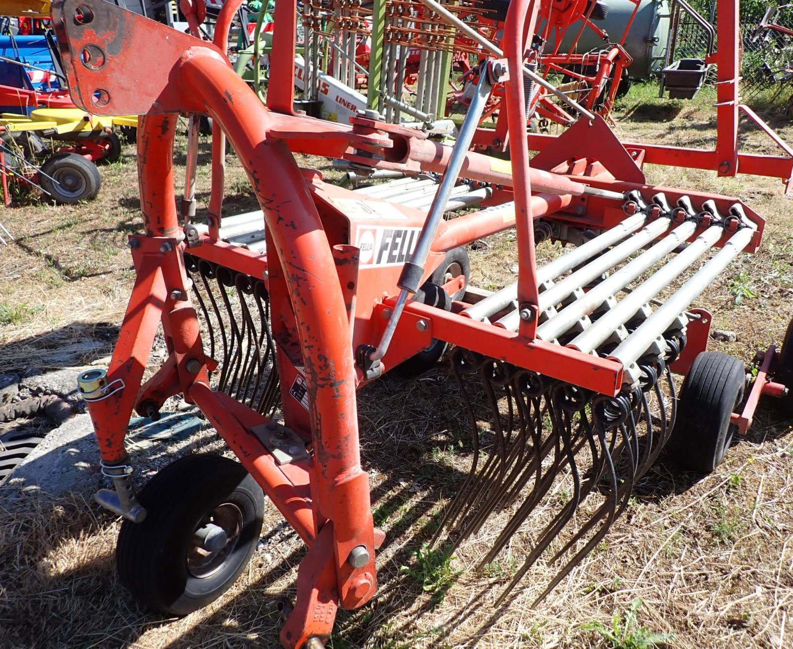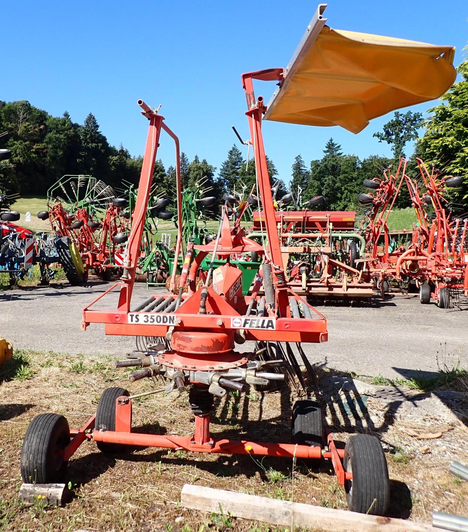 Arbeitsbreite 3,50 Meter, 10 Kreiselarme mit je 3 Paar Zinken, Gewicht ca. 400 kg, Ballonbereifungen 15 X 6.00-6, Tandemachsen, Stützrad mit Kettenoberlenker, verstellbare Kurvenbahn, Gelenkwelle, Kurbel für Höhenverstellung vom Traktorsitz aus, Dreipunkt-Schwenkbock Kat. I + II mit Stabilisatoren-
