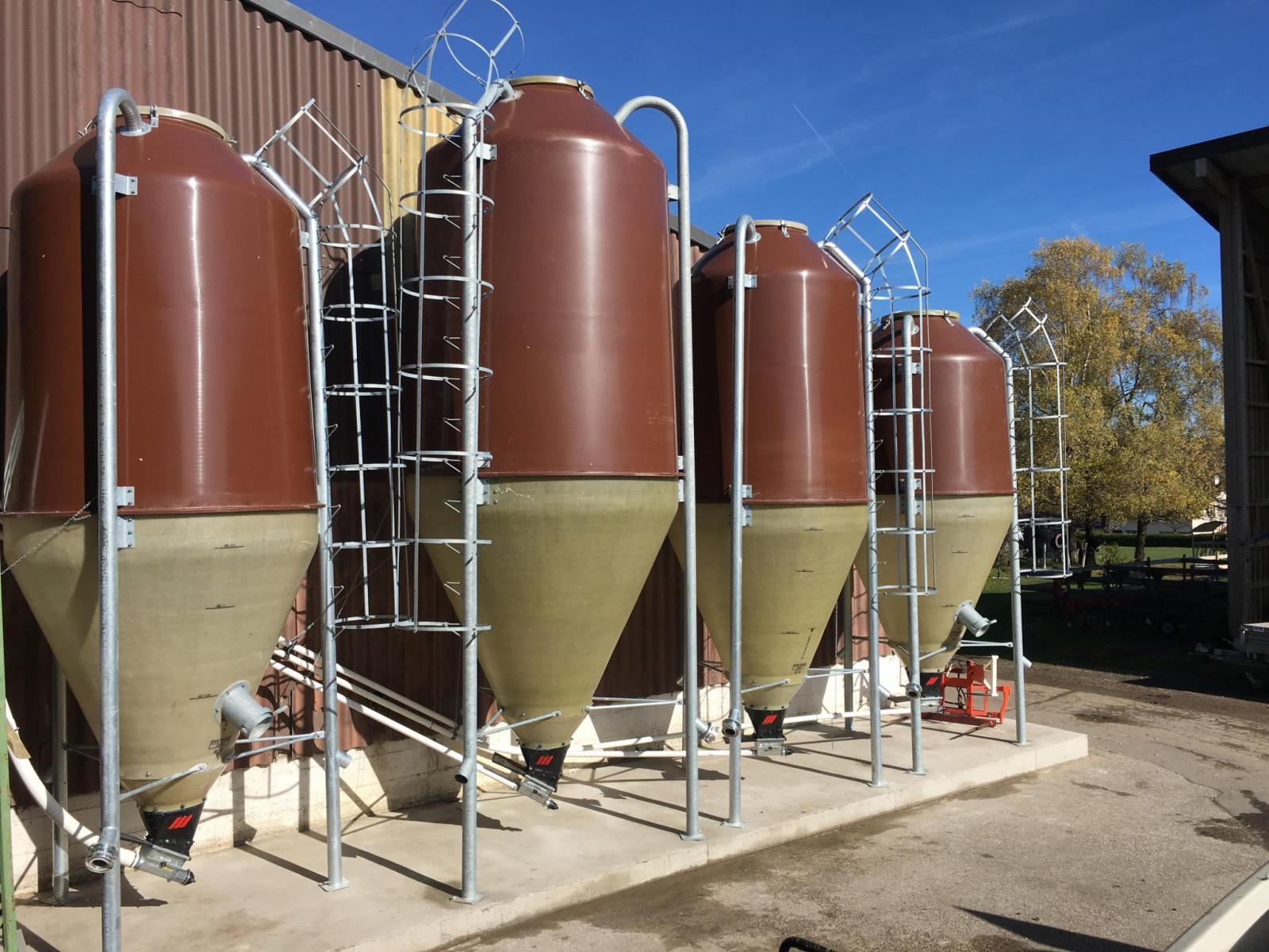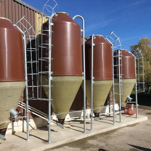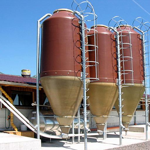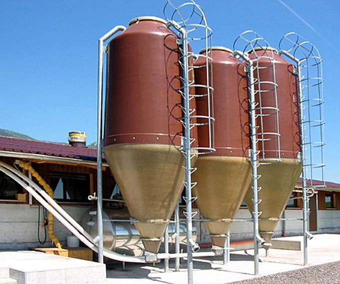 Ebenfalls beliefern wir Sie mit Polyestersilos. Der Konus ist durchsichtig. Das Polyester ist in Grün, Braun oder Weiss erhältlich. Fassungsvermögen liegt zwischen 3.5 - 31 m3. Ab 6 m3 hat Ihr Silo eine Inspektionsleiter und gegen Aufpreis eine Spirale oder Abladeschnecke.