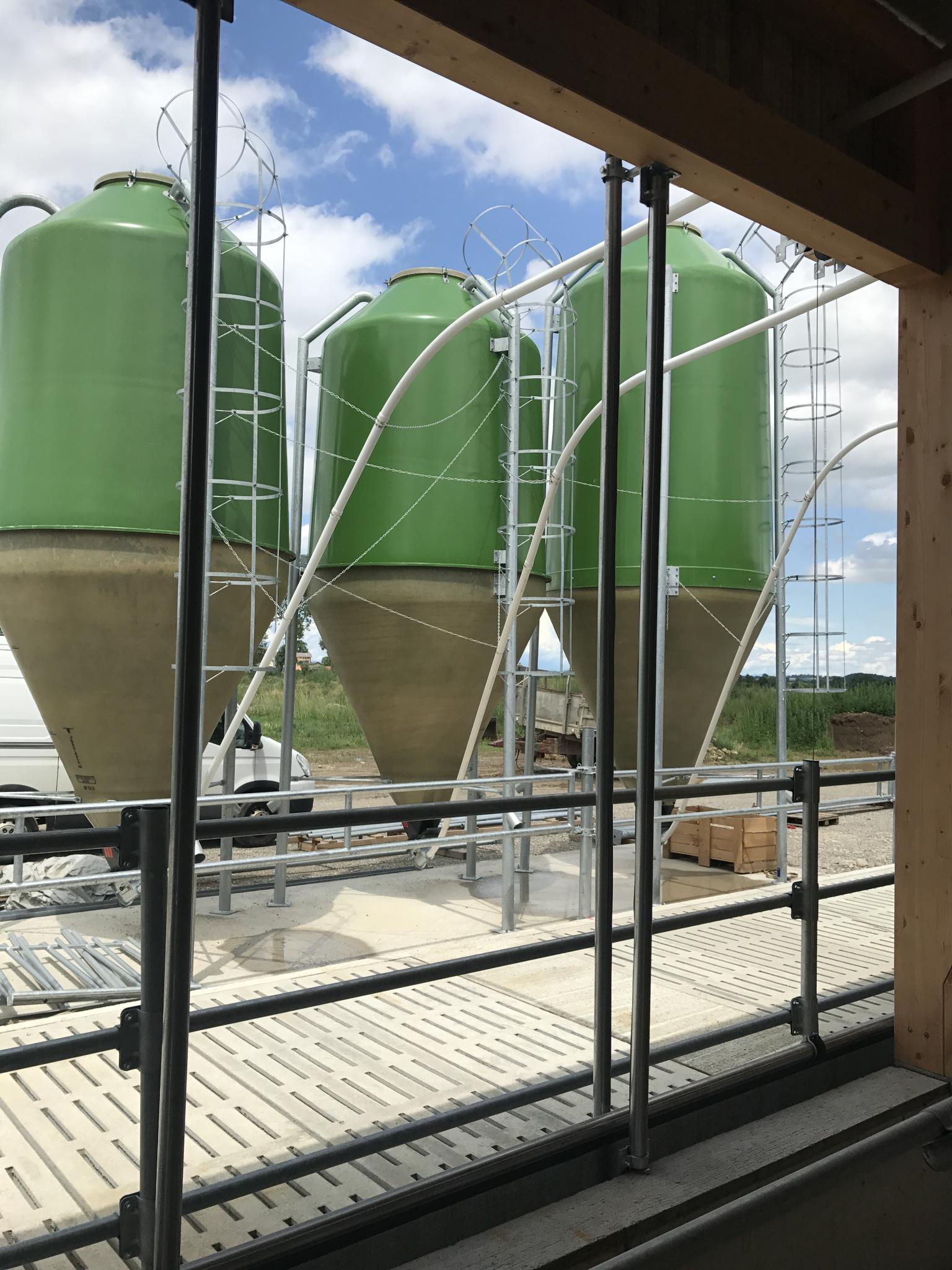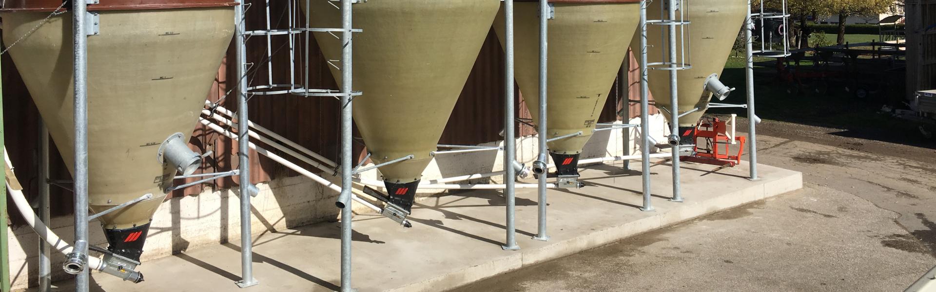 Gerne beraten wir Sie beim Bau eines Stahl- Silos auf Ihr Mass. Dieses ist komplett verzinkt und hat pro Kammer einen Einstieg für Kontroll - sowie Reinigungsarbeiten. Abgang mit Schieber oder für Schneckenspirale.
