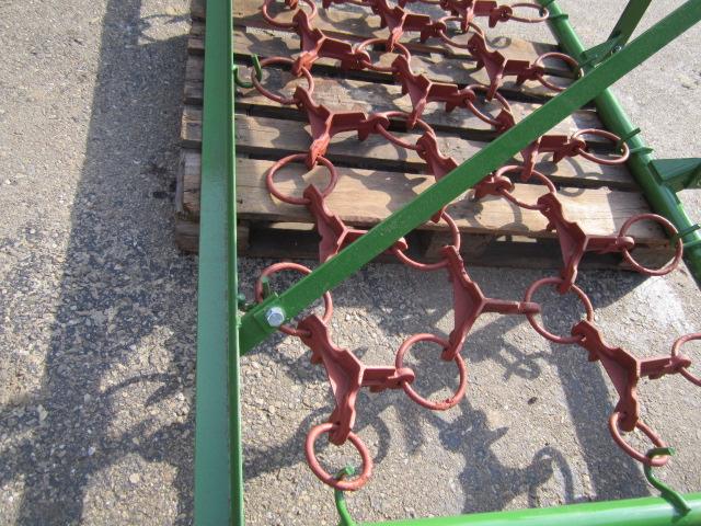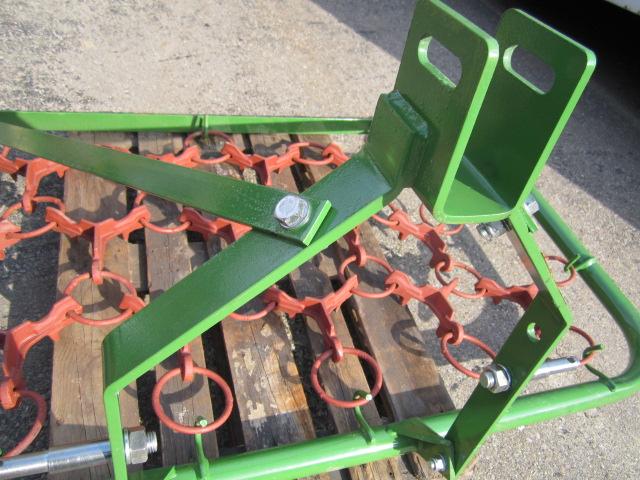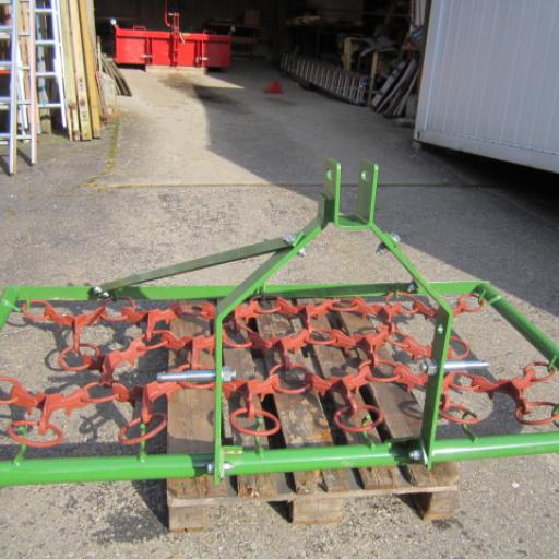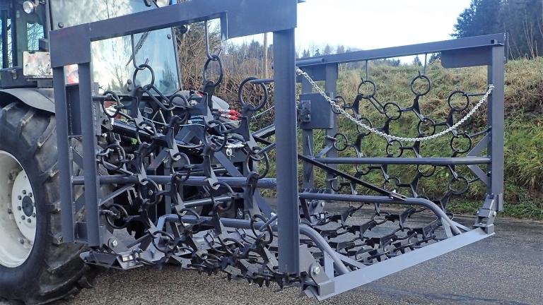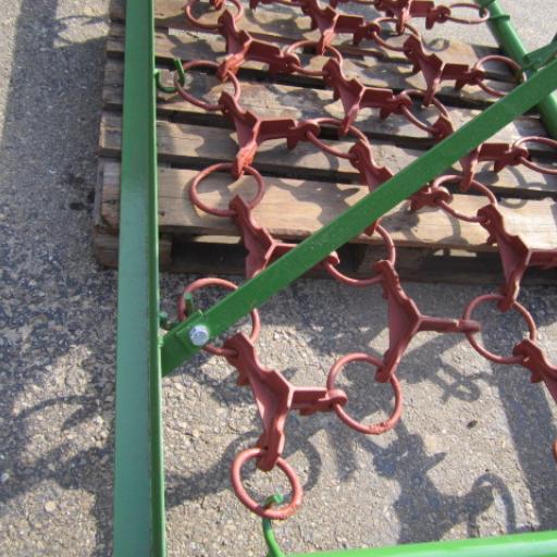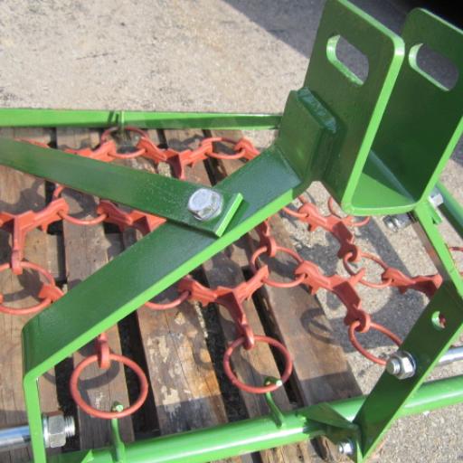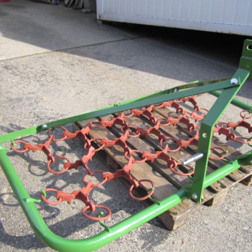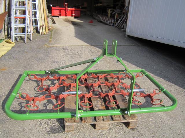 Dreipunktanbau Kat. I, Netz mit 3-Ringreihen, Netz kann beidseitig verwendet werden - flach oder auf den Spitzen, ideale Egge für Zweiachsmäher oder leichtere Traktoren, Gewicht: 2 Meter = 110 Kilogramm (nicht klappbar)- leichte Bauart.